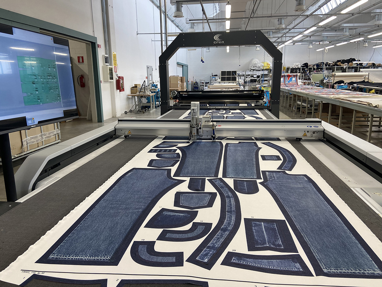 Fino al 2022, Mary Fashion ha mantenuto invariato questo approccio, basandosi su metodi consolidati ma ormai superati dal punto di vista tecnologico. L’adozione del sistema IRIS di Crea Solution ha rappresentato per l’azienda un vero e proprio punto di svolta. IRIS è una tecnologia innovativa di visione artificiale applicata al taglio a foglio singolo, che permette di automatizzare un processo fino ad allora complesso e manuale. Grazie alla capacità di riconoscere e interpretare i motivi ripetuti nei tessuti, il sistema consente un piazzamento preciso dei modelli, ottimizzando l’uso del materiale e riducendo gli sprechi.